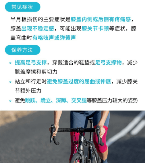 活动时有膝关节内的响声,多因破裂的半月板在膝关节活动时与胫骨、股骨发生异常的摩擦和弹动而产生。